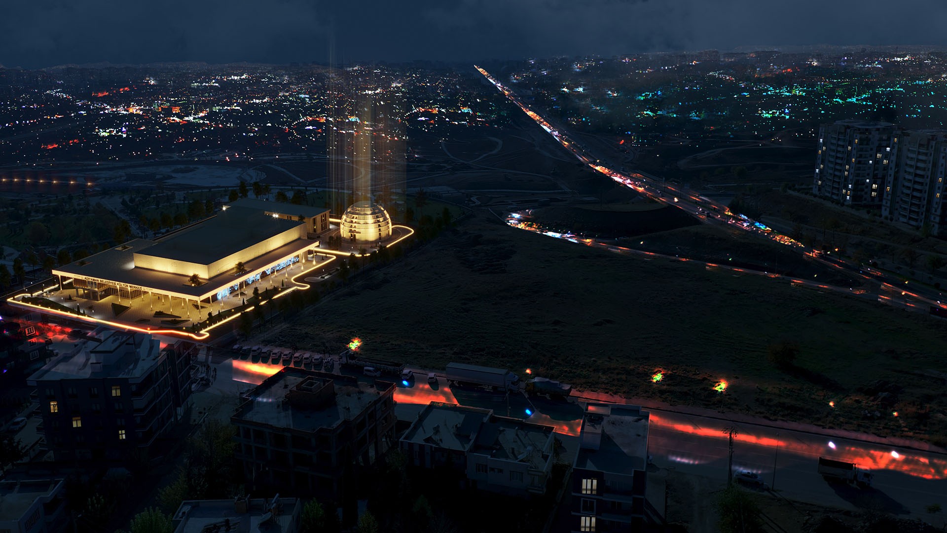 Adıyaman’ın kapalı alan gerektirecek en büyük organizasyonlarına ev sahipliği yapacak tiyatro ve konferans binası, uluslararası oyunları ağırlayabilecek büyüklük ve teknolojiye sahip 650 m²’lik iddialı sahnesiyle bölgenin en büyük ve en donanımlı sahnesine sahip bina olacaktır.